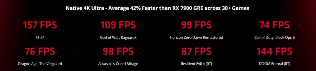 | 4K Gaming Performance | 42% faster than RX 7900 GRE across 30+ games at native 4K Ultra settings. |